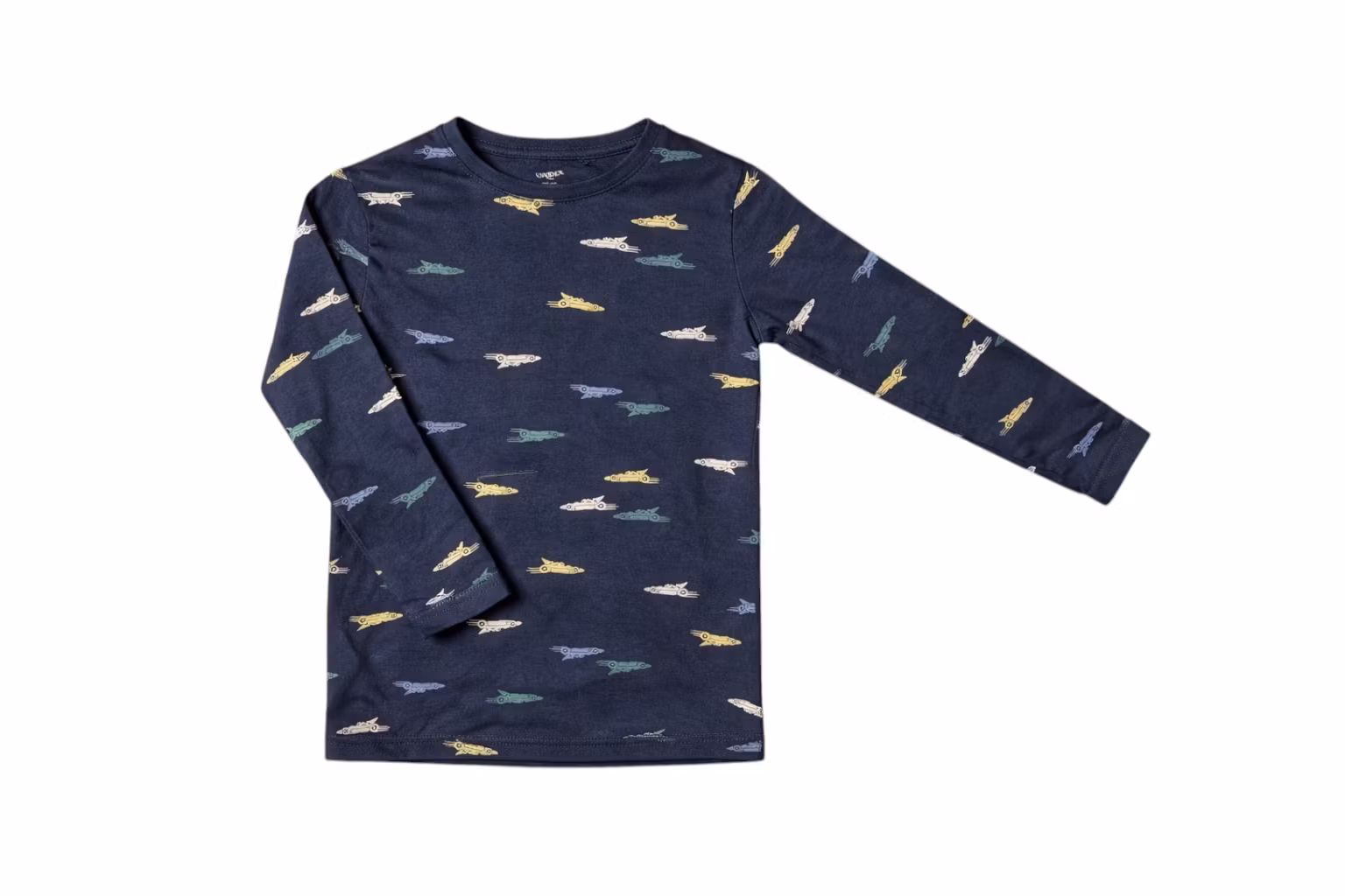 - En mörkblå tunn långärmad med bilar från Lindex.