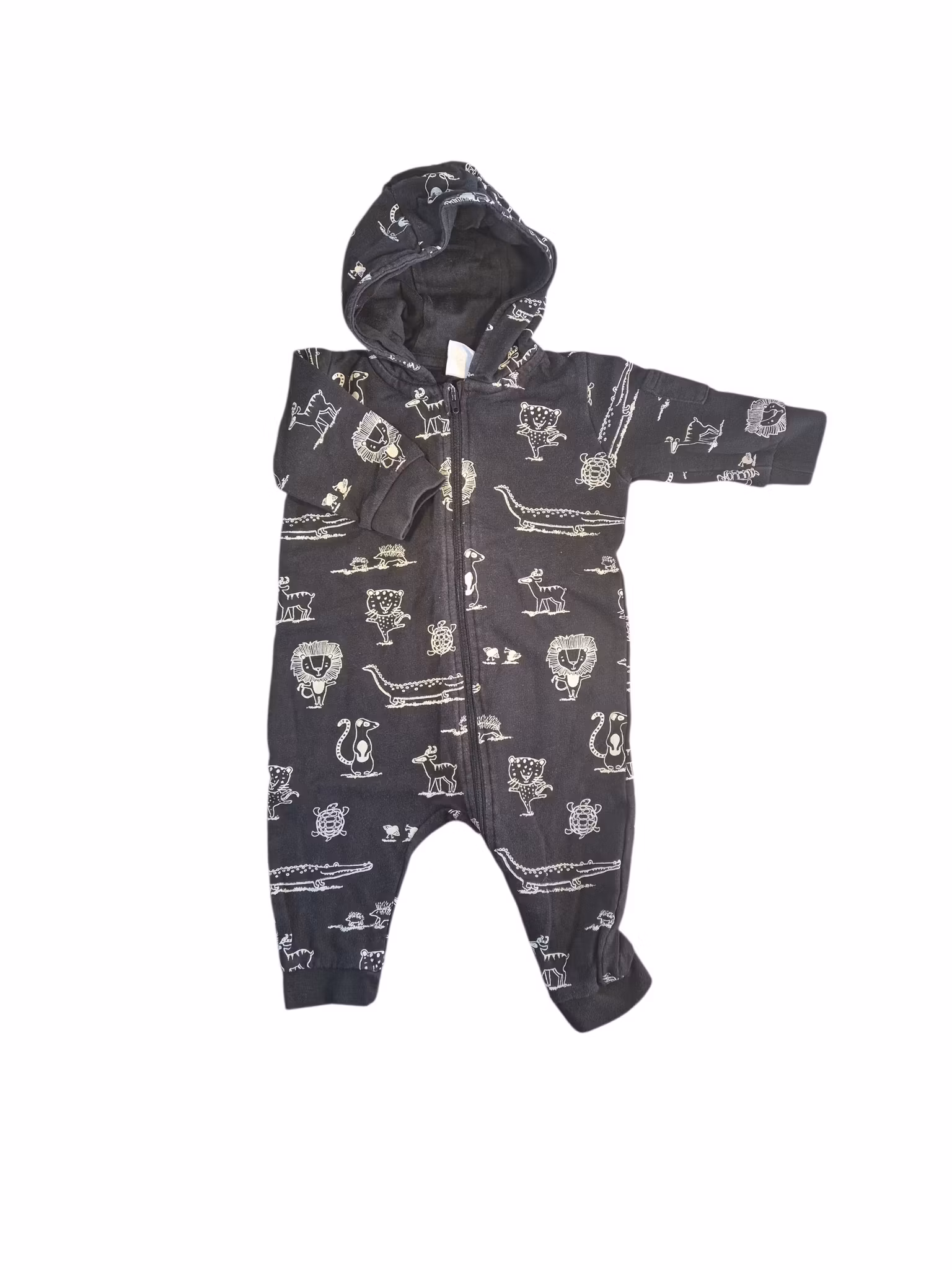 Plagget är använt och har normalt bruksslitage, exempelvis lätt blekning från tvätt eller nopprigt. I övrigt är det helt och i gott skick.