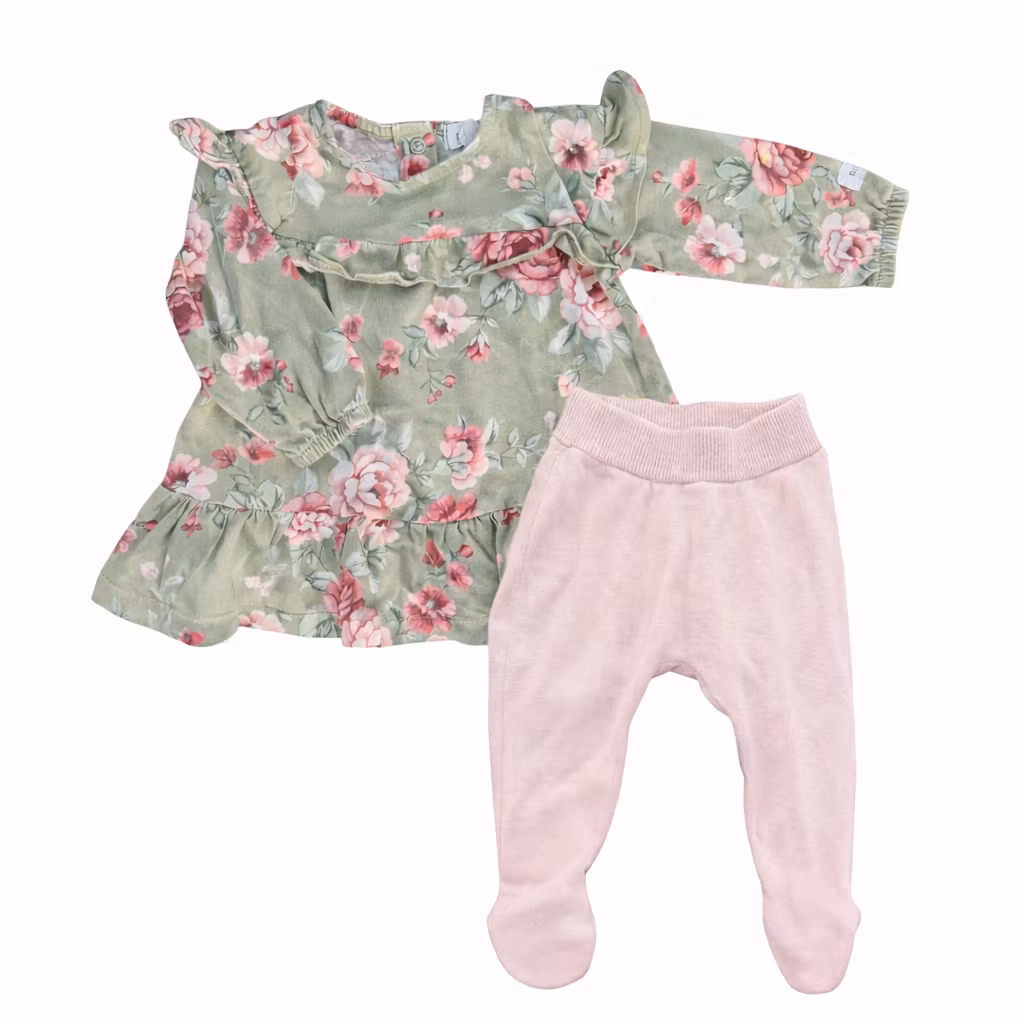 - En grön klänning från Newbie och ett par ljusrosa byxor från H&M.