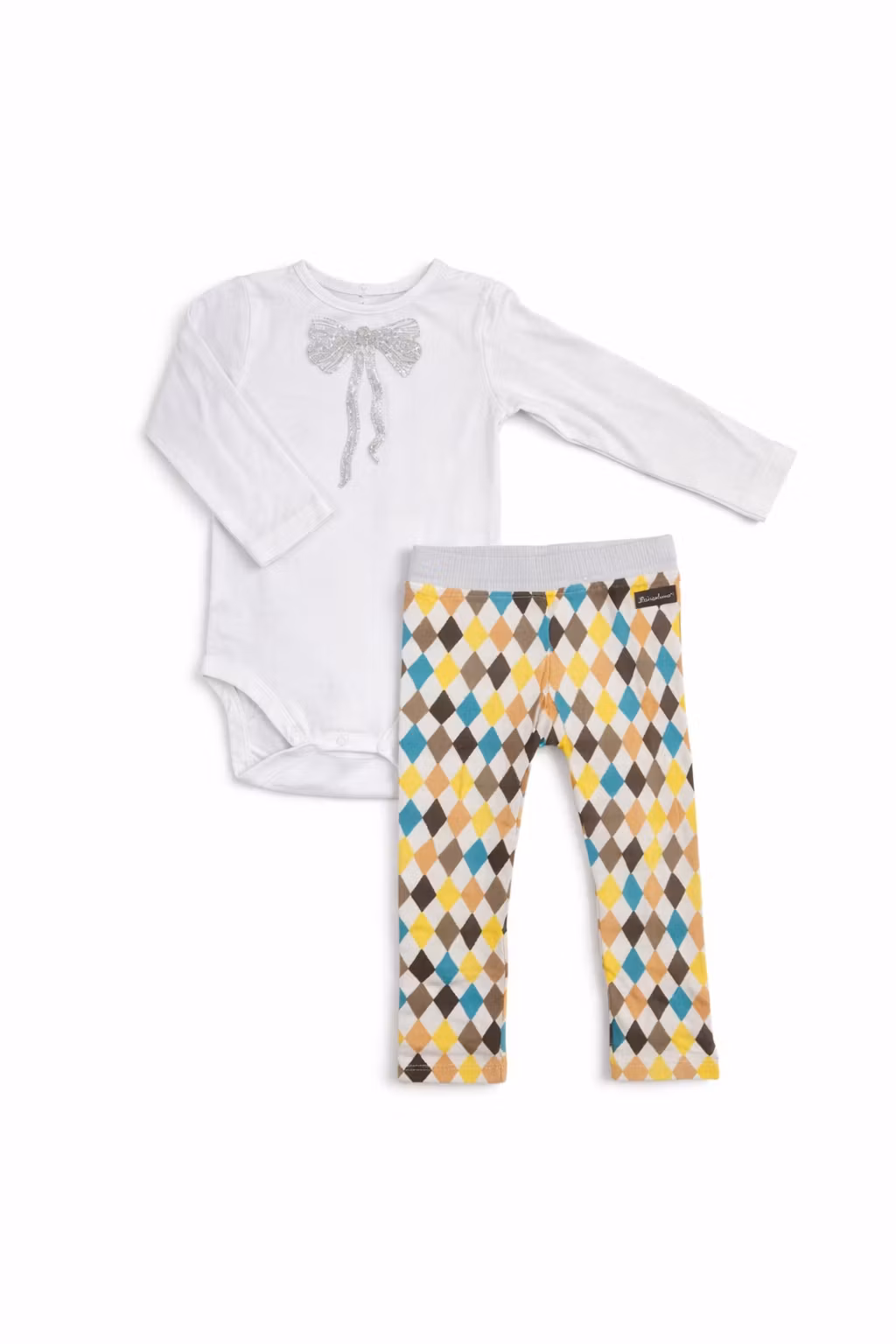 - Ett set med en vit body från Kappahl och ett par rutiga byxor från Lindex