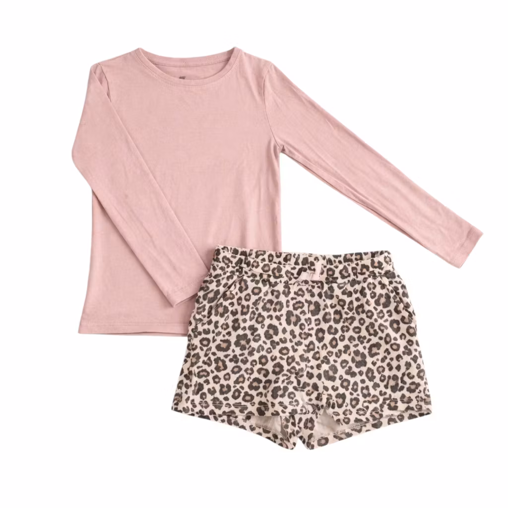 - En rosa tröja och ett par shorts från H&M.