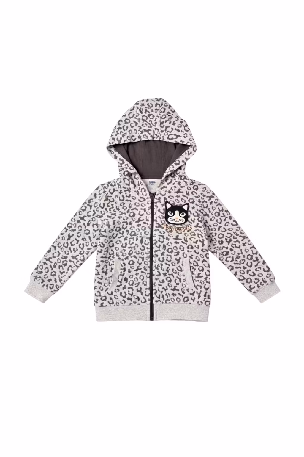 - En grå leopardmönstrad kofta i mjukt material från Lupilu.