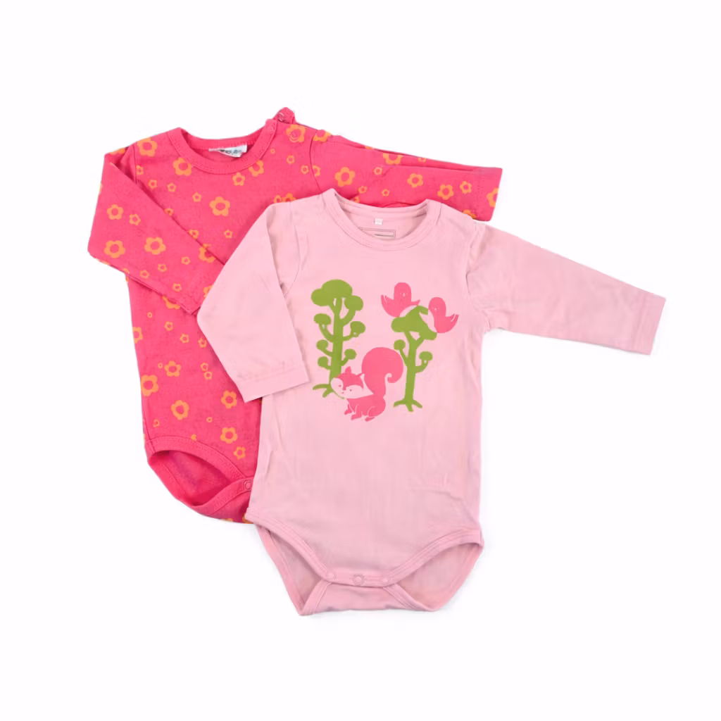- En mörkrosa body från Name it och en ljusrosa body från Petter & Kajsa