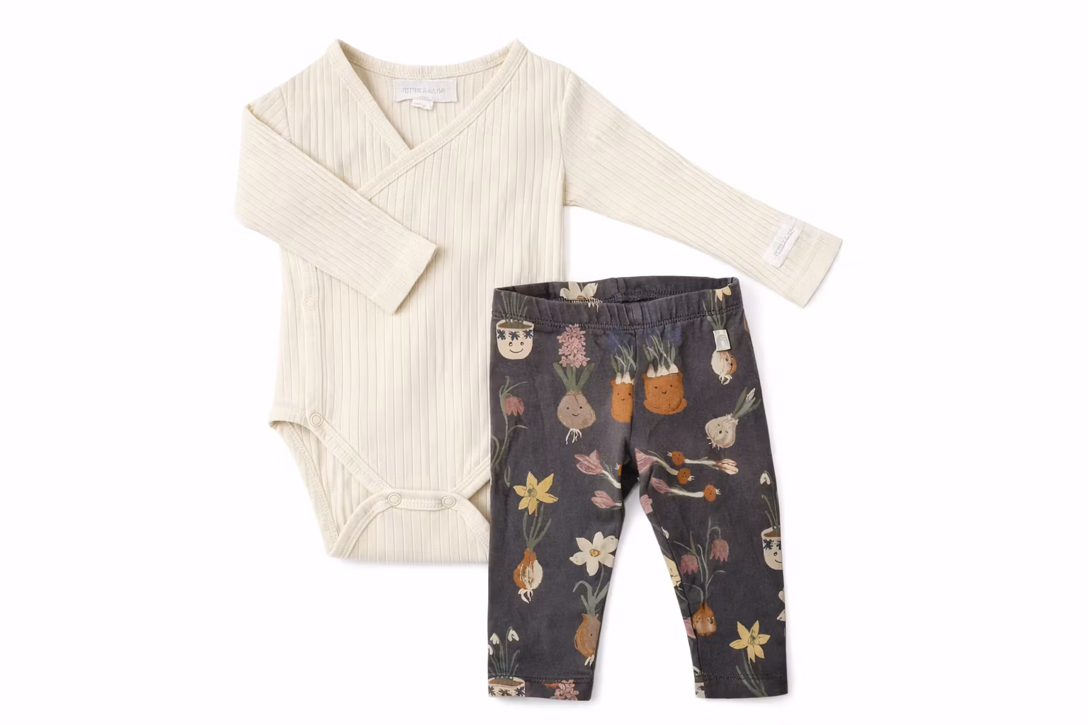 - En beige body från Petter & Kajsa och ett par byxor från Lindex