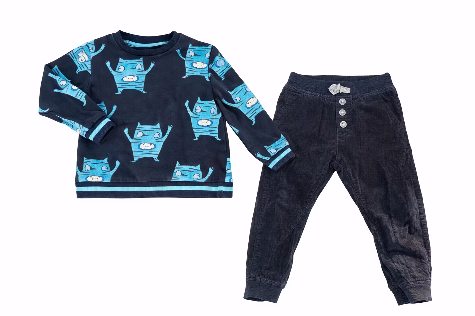 - Ett set med en tröja från Åhléns och ett par ribbade byxor från Lindex.