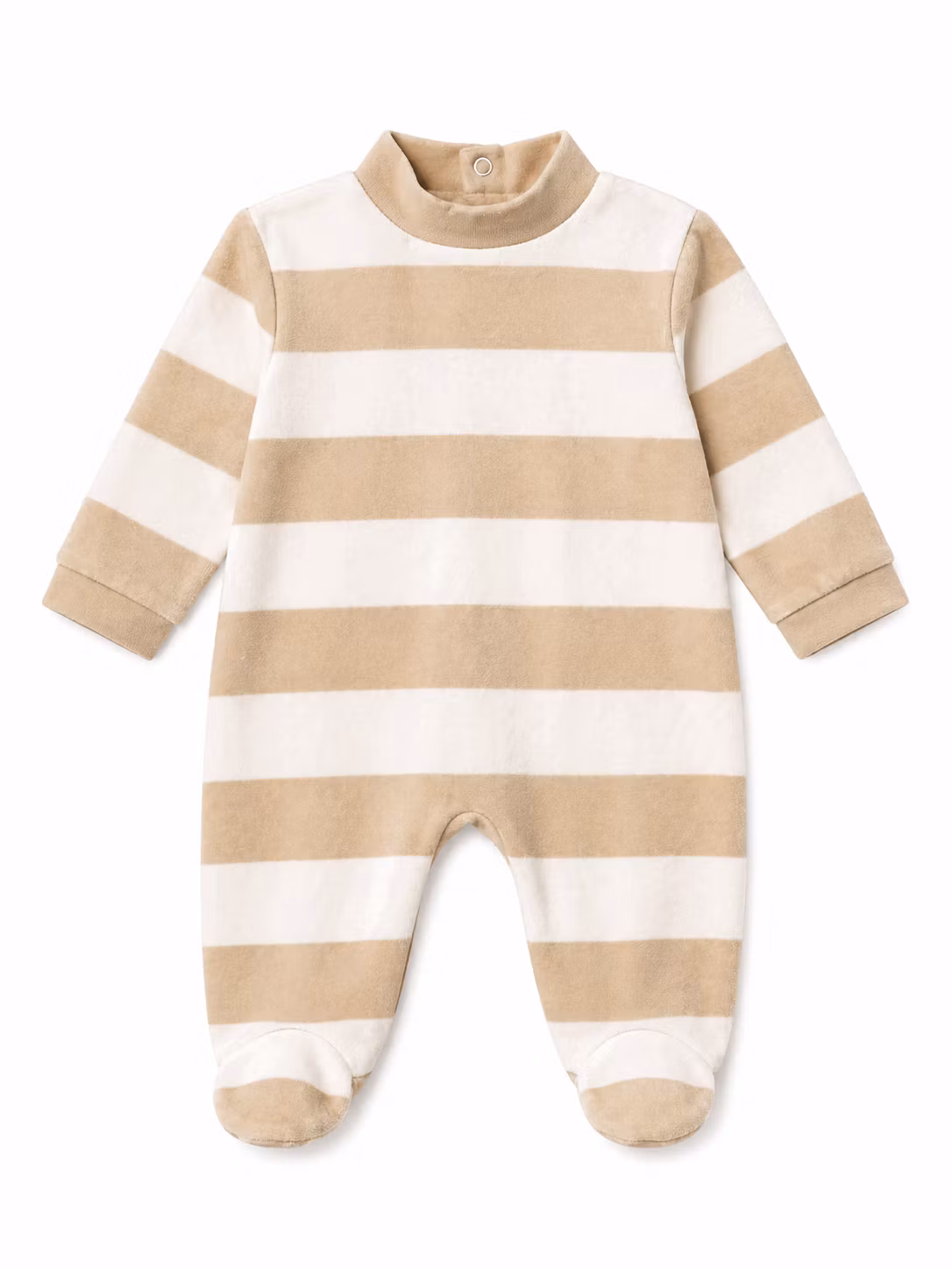 - En beige/vit randig mjuk pyjamas med fötter från Little Star.