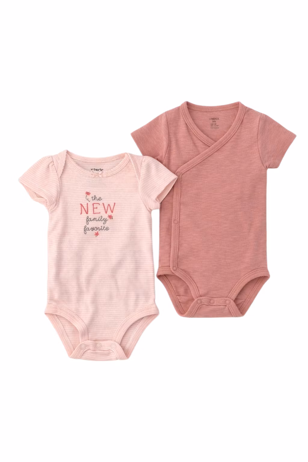 - En ljusrosa randig body från Carter´s (OBS storleken är 3 månader) och en rosa/aprikos body från Lindex