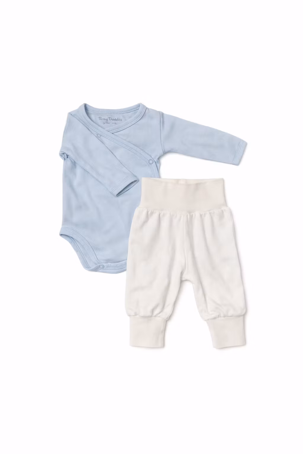 - En ljusblå body från Tiny Treasure och ett vita byxor från Basic U